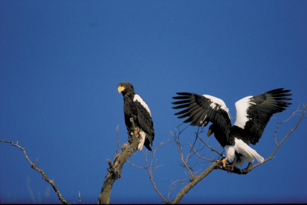 Noter que la région des 5 lacs peut-être visitée aussi l’hiver, pour observer notamment des espèces rares comme le Pygargue empereur, l’un des plus grands rapaces au monde vivant visible seulement dans les régions du monde situées près du détroit de Béring.