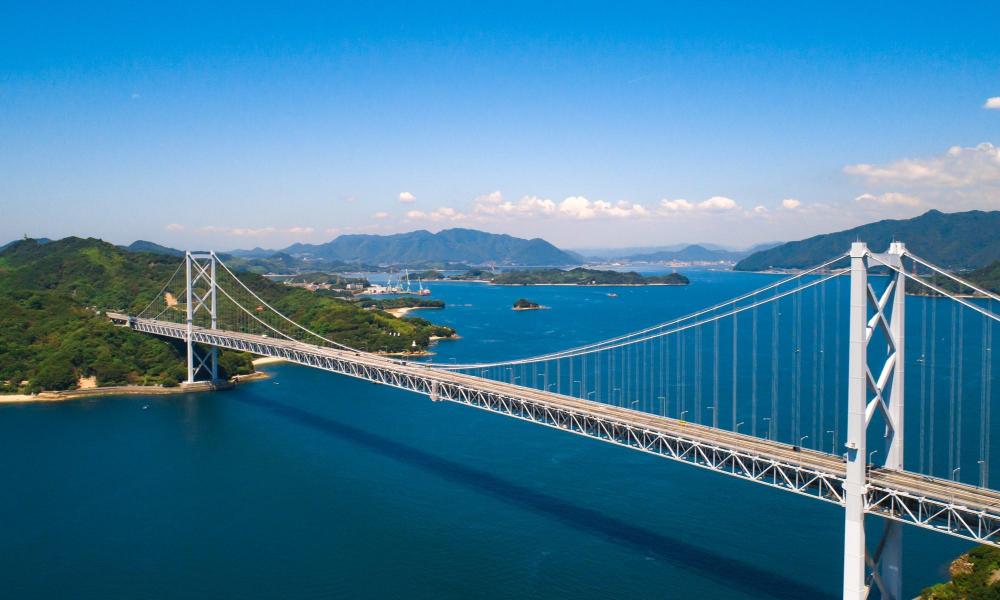 Shimanami Kaido est une route d'une longueur totale d'environ 60 km reliant Onomichi dans la préfecture d'Hiroshima à la ville d'Imabari, dans la préfecture d'Ehime. Dans la mer intérieure de Seto, un pont relie les îles de Geiyo, et à part le trajet allant de Onomichi à Muaishima, une route spécialement conçue pour les piétons et les vélos a été aménagée.
